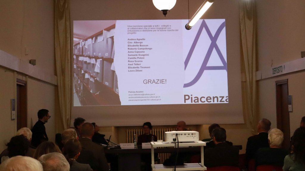 Dopo i saluti istituzionali dell’Assessore del Comune di Piacenza, Christian Fiazza, la giornata è stata aperta dalla relazione del Colonnello Pierluigi Zara, Capoufficio del Centro Documentale di Bologna ed è continuata con le presentazioni di Patrizia Anselmi, Arianna Bonè e Silvia Sartori.